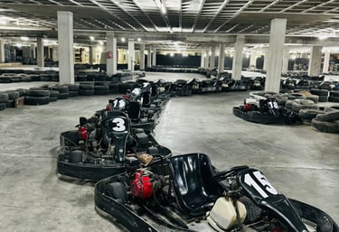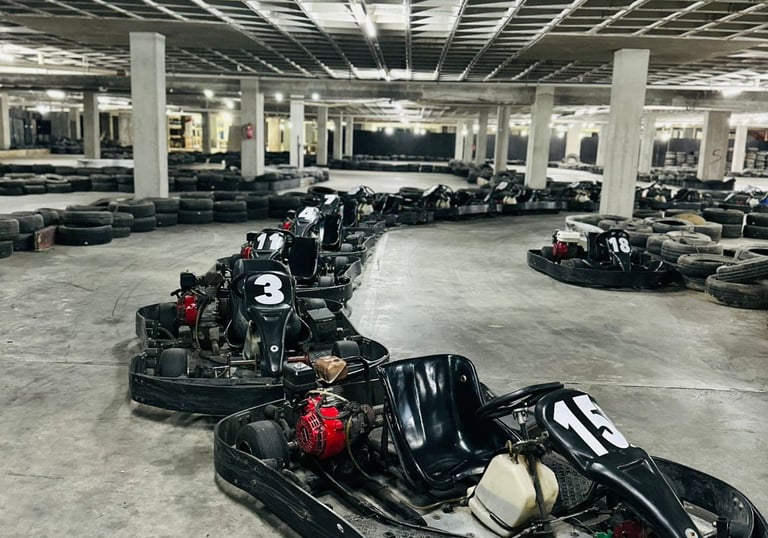 Karts modernos y seguros para todas las edades con una altura mínima de 1,30, listos para acelerar tu diversión.